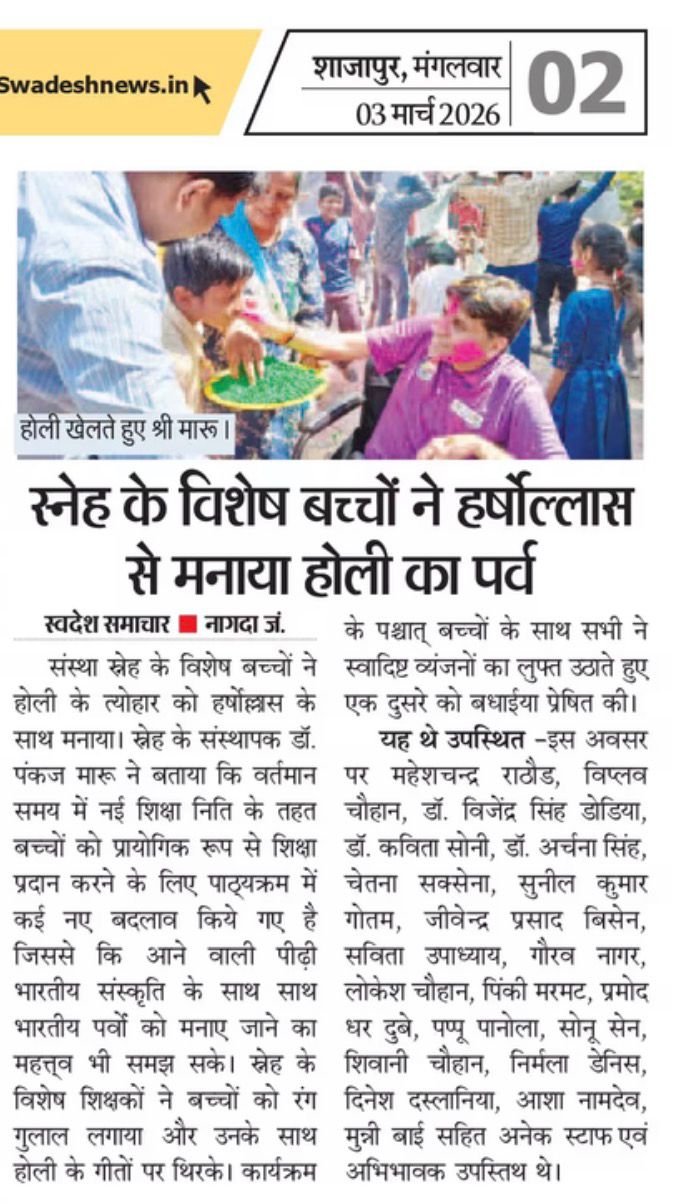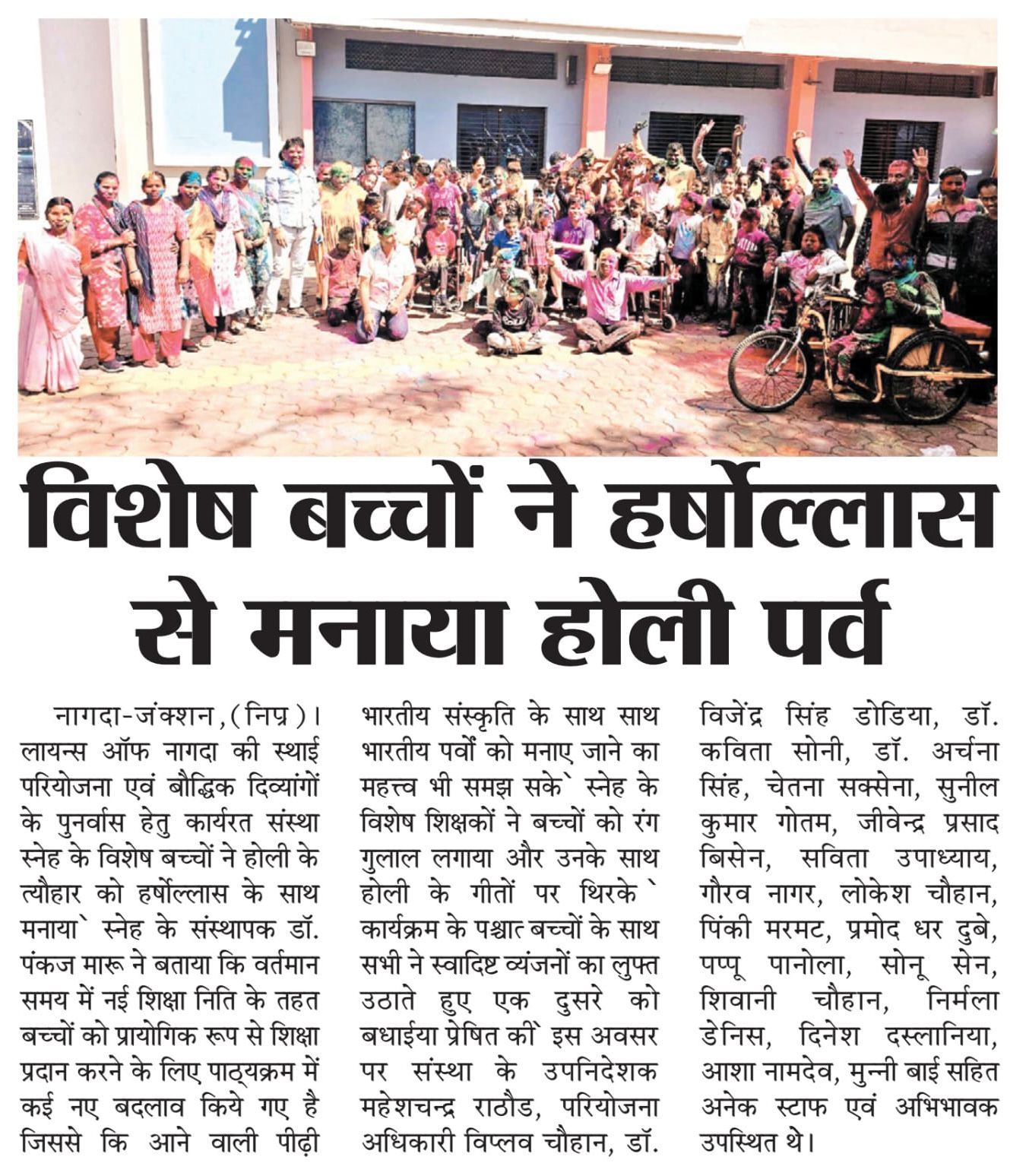 स्नेह के विशेष बच्चों ने हर्षौल्लास से मनाया होली का पर्व