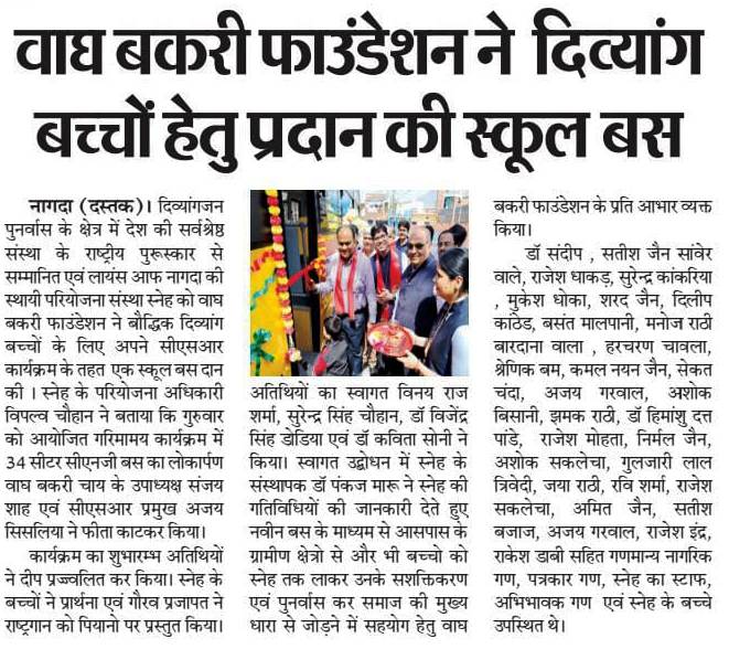स्नेह के बौद्धिक दिव्यांग बच्चों को मिली स्कुल बस, आवागमन में होगी सुविधा, अहमदाबाद के फाउंडेशन न