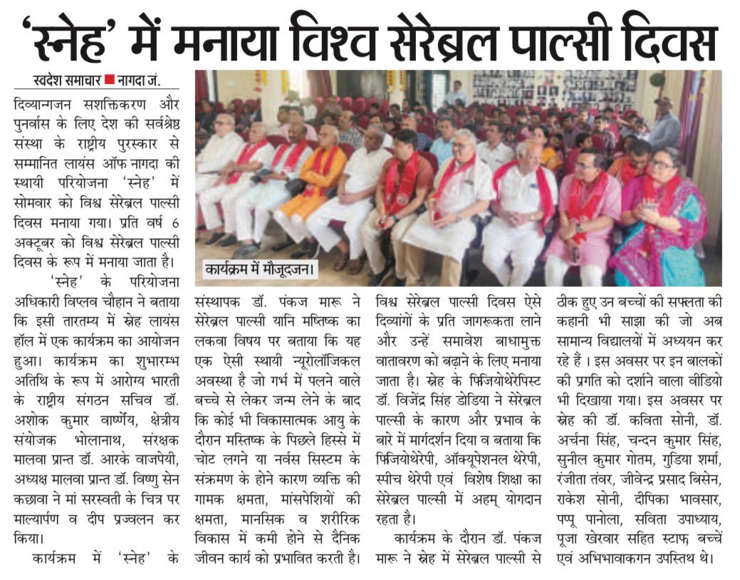 स्नेह में मनाया विश्व सेरेब्रल पाल्सी दिवस