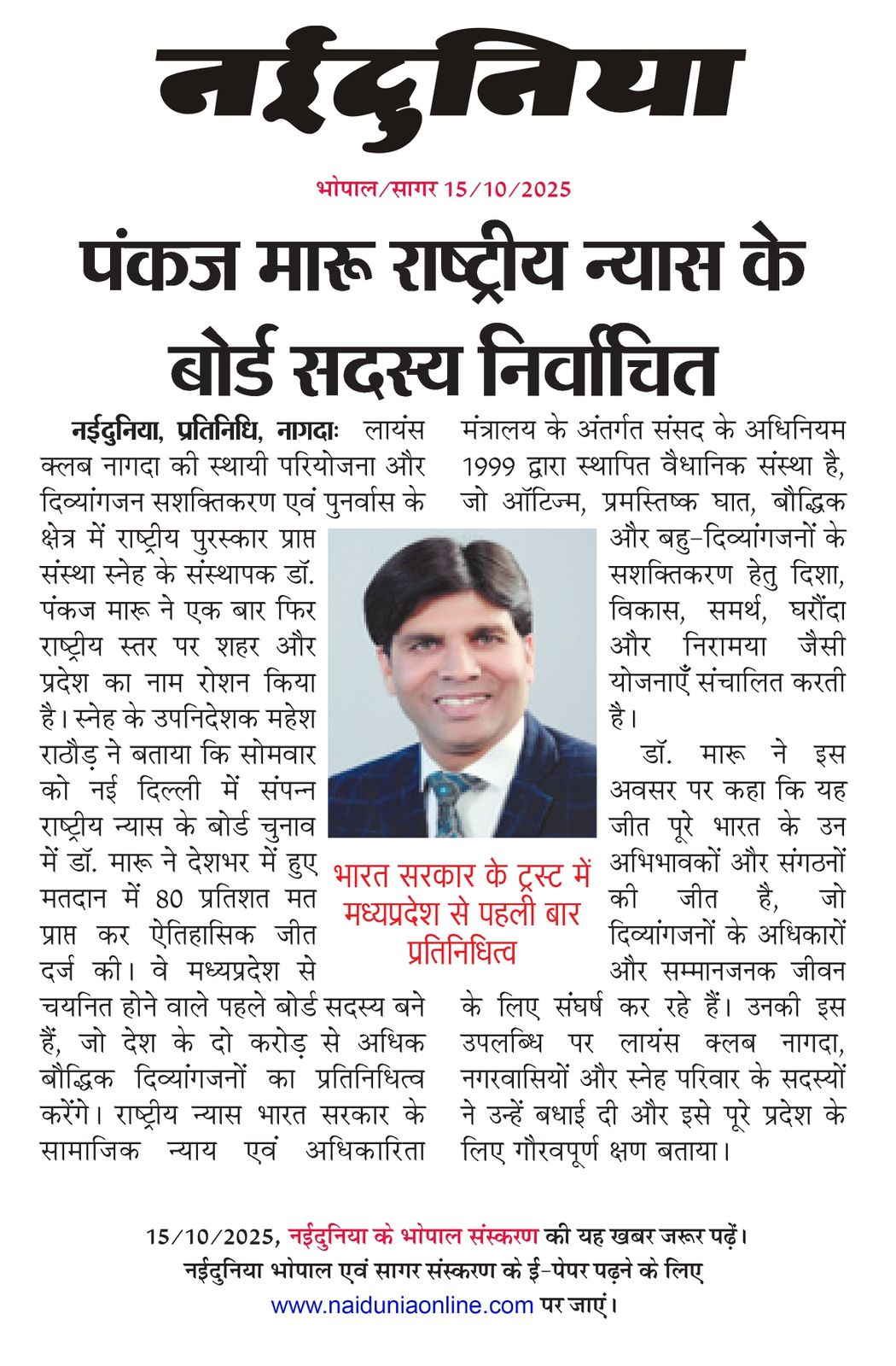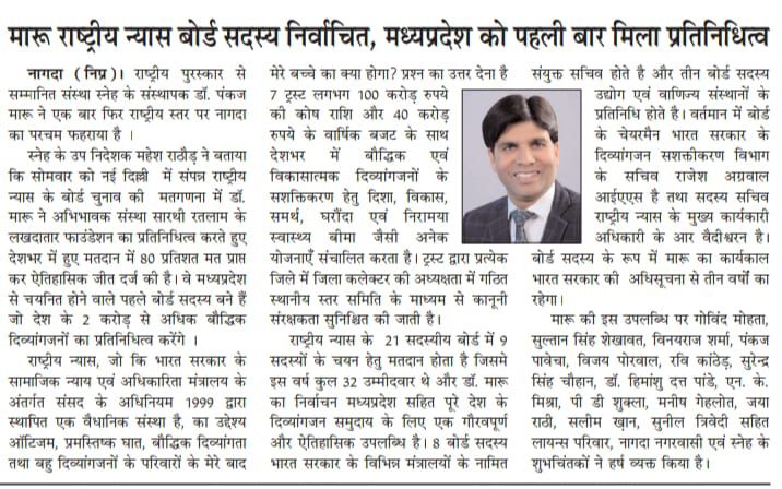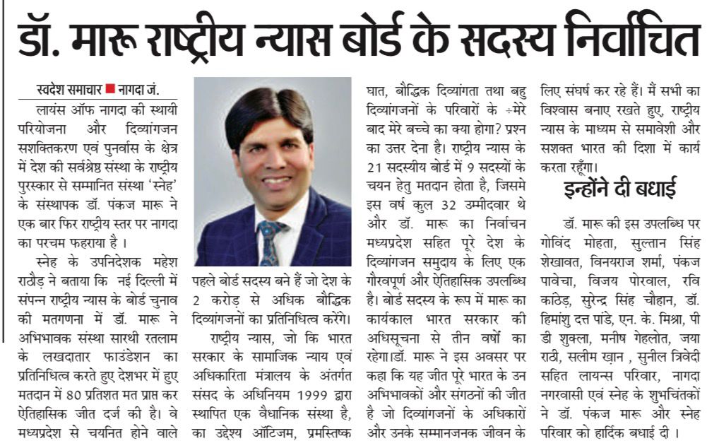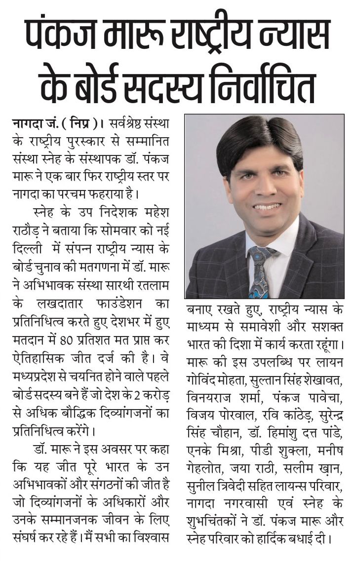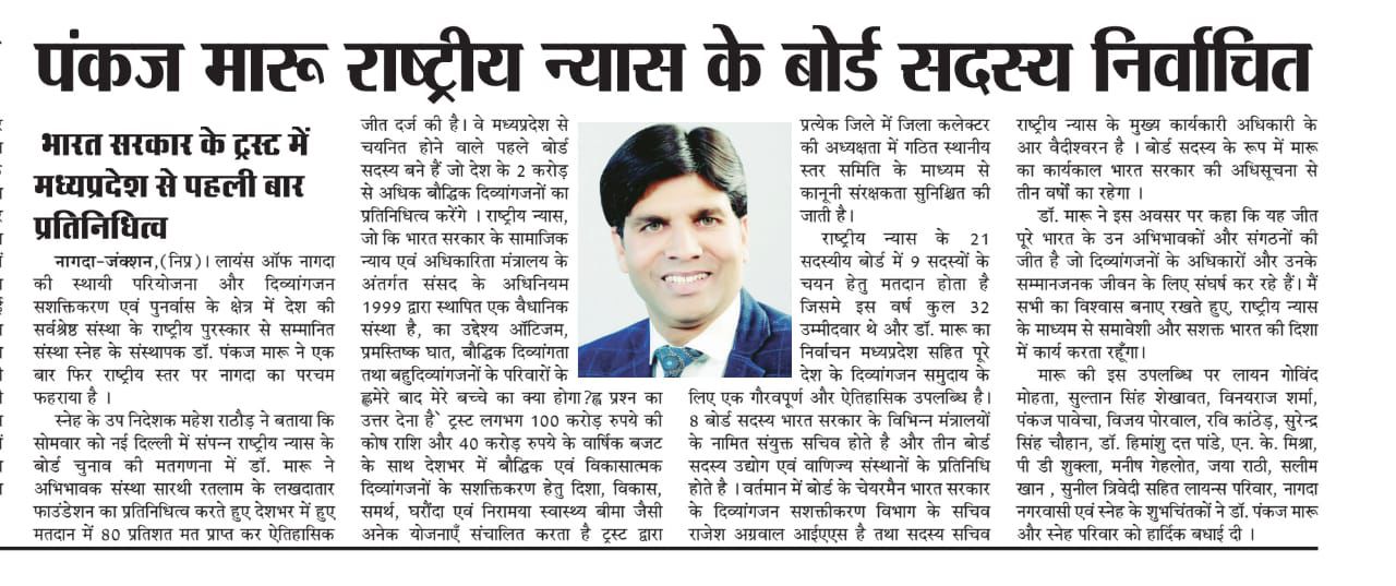 डॉ. पंकज मारू राष्ट्रीय न्यास बोर्ड के सदस्य निर्वाचित