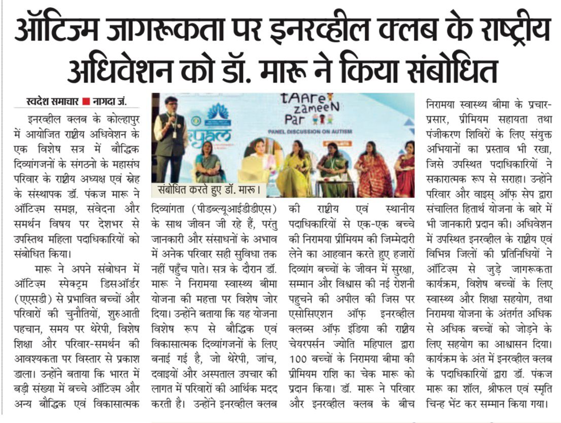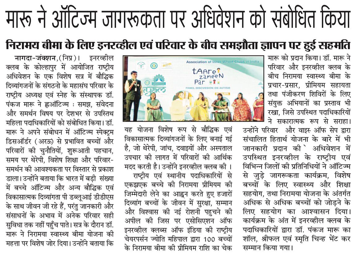 ऑटिज्म जागरूकता पर इनरव्हील क्लब के राष्ट्रीय अधिवेशन को डॉ. मारू ने किया संबोधित